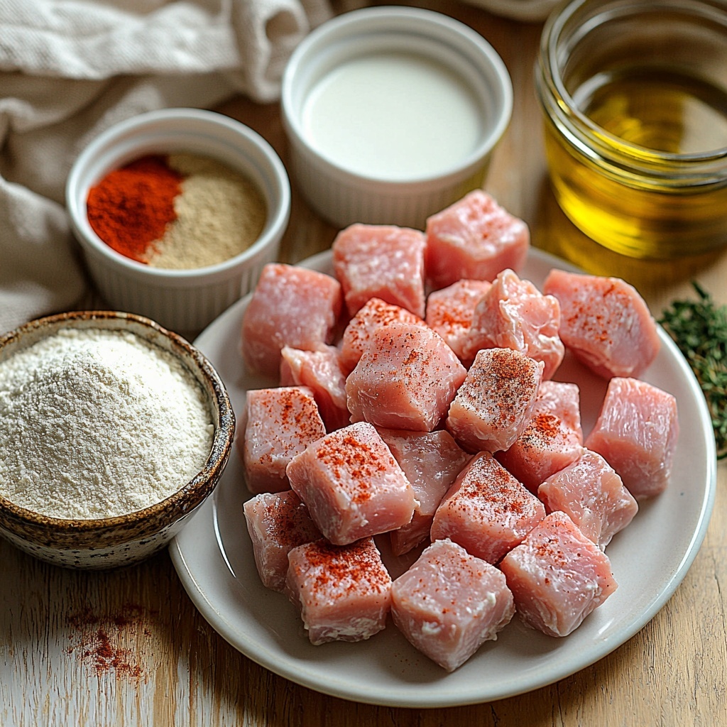 - Prepare Chicken: In a mixing bowl, combine the bite-sized chicken pieces with buttermilk. Cover the bowl and let the chicken marinate for at least 15 minutes, preferably refrigerating to enhance flavor and tenderness.