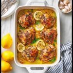 This Greek Lemon Chicken recipe features bone-in chicken thighs marinated in a flavorful blend of lemon juice, olive oil, garlic, and Mediterranean herbs. Baked to perfection, it offers tender, juicy meat with a crisp, golden skin, making it a perfect main dish for family dinners or entertaining guests.