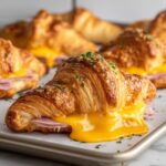 Arrange the Ham and Cheddar Crescent Roll-Ups Recipe on a wooden board or a colorful platter for a rustic look. For parties, serve them with little cocktail picks for easy grabbing. You can even cut them into smaller bite-sized pieces for a fun finger-food option.