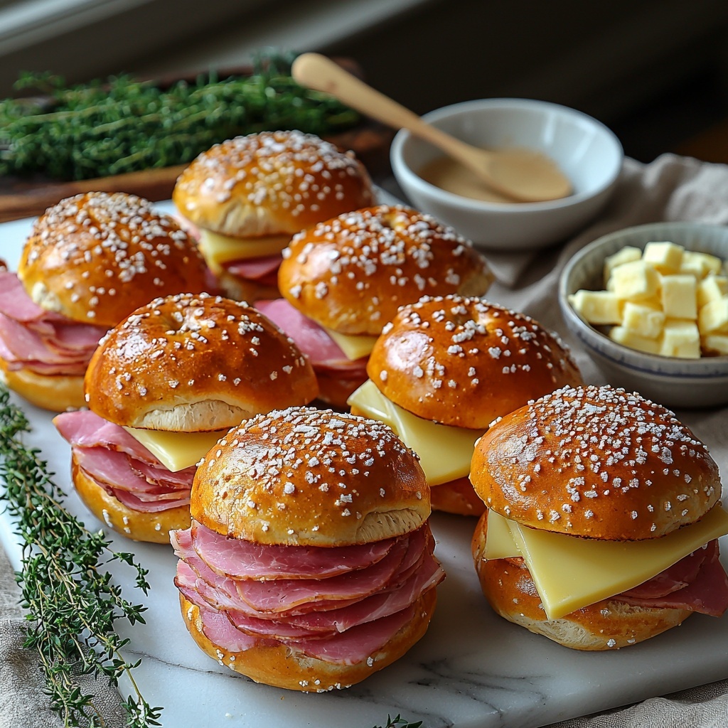 Getting the ingredients right is the key to nailing these sliders. Each component plays a vital role—from the chewy pretzel buns that provide texture and a slight saltiness, to the savory ham and melted cheese which deliver richness, and finally the sweet and tangy butter topping that really elevates the whole dish.