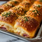 These Ham Cheese Pretzel Sliders are a delicious and easy-to-make snack or meal featuring soft pretzel buns layered with savory ham and melted cheese. Topped with a flavorful butter glaze and optional sesame seeds, they’re baked to golden perfection for a crowd-pleasing appetizer or sandwich.