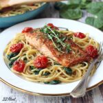 Plate your Healthy Creamy Tuscan Salmon Pasta Recipe over cooked Barilla Protein+ pasta or your pasta of choice for that complete, comforting meal your whole family will adore.