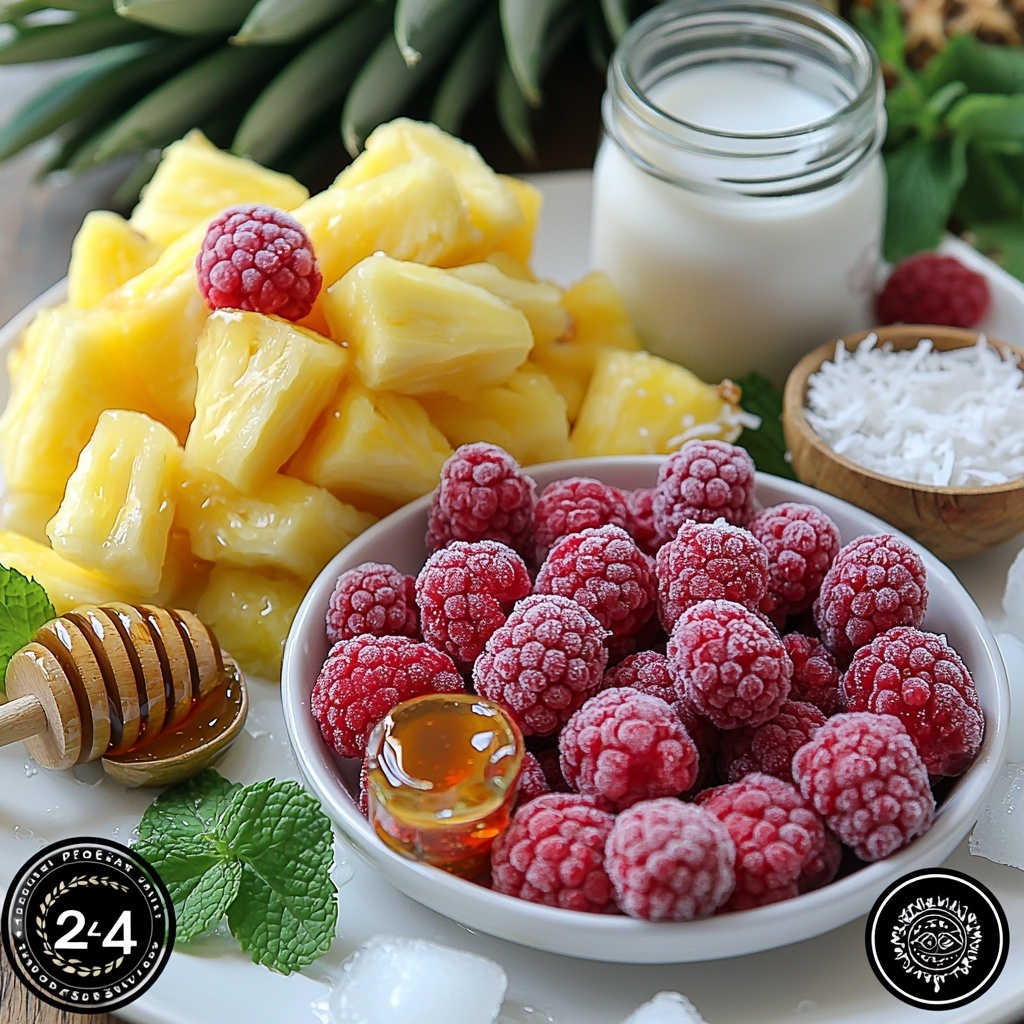 Gathering the right ingredients makes all the difference in bringing this tropical masterpiece to life. Each element plays an essential role, from the juicy punch of pineapple to the creamy texture coconut milk provides, not to mention the vibrant color and antioxidants from the raspberries.