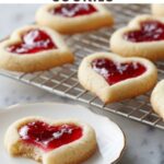 Cooling them briefly on the hot baking sheet helps the cookies firm up so they don’t break when transferring. It also allows the jam center to set nicely, preserving those beautiful heart shapes.