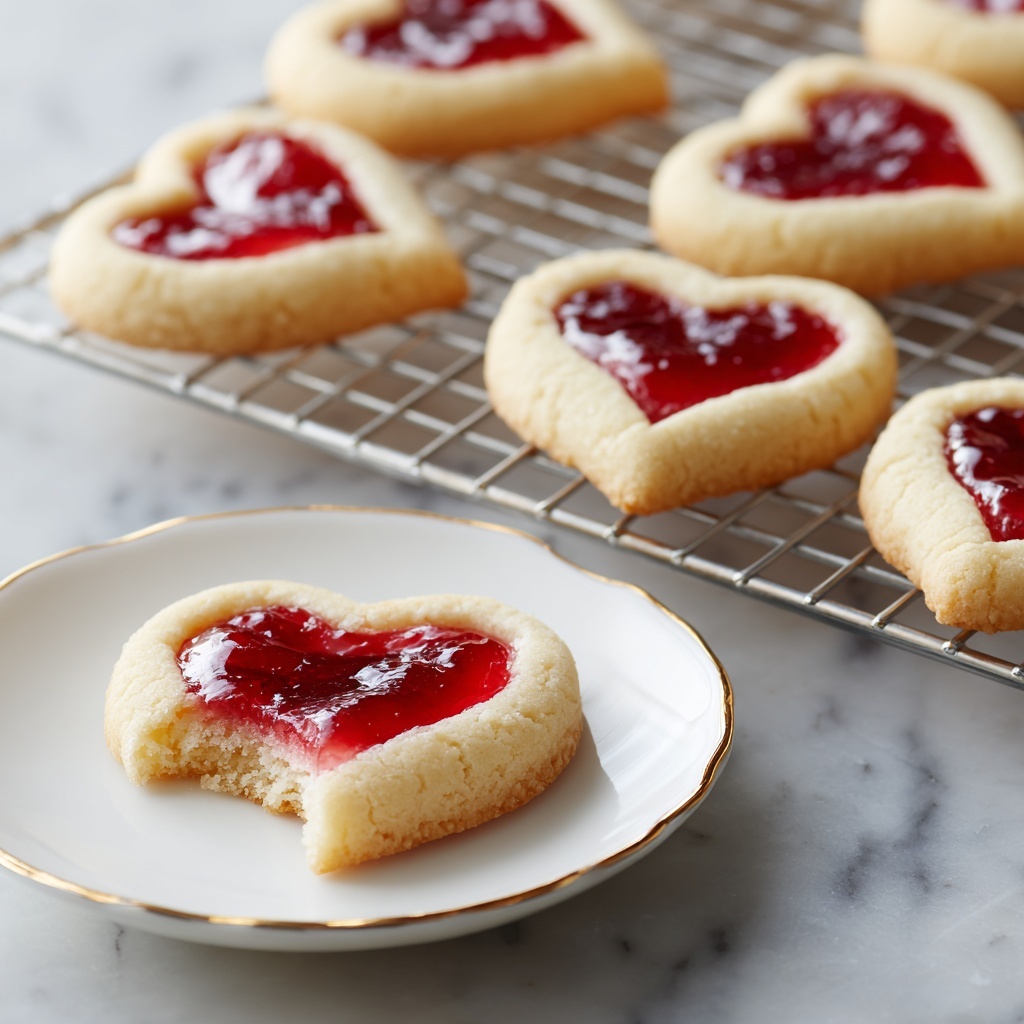 A simple dusting of powdered sugar over cooled cookies adds a delicate snowy finish that highlights the vibrant jam heart perfectly. For an extra touch of elegance, try decorating with a tiny fresh mint leaf beside each jam-filled center.