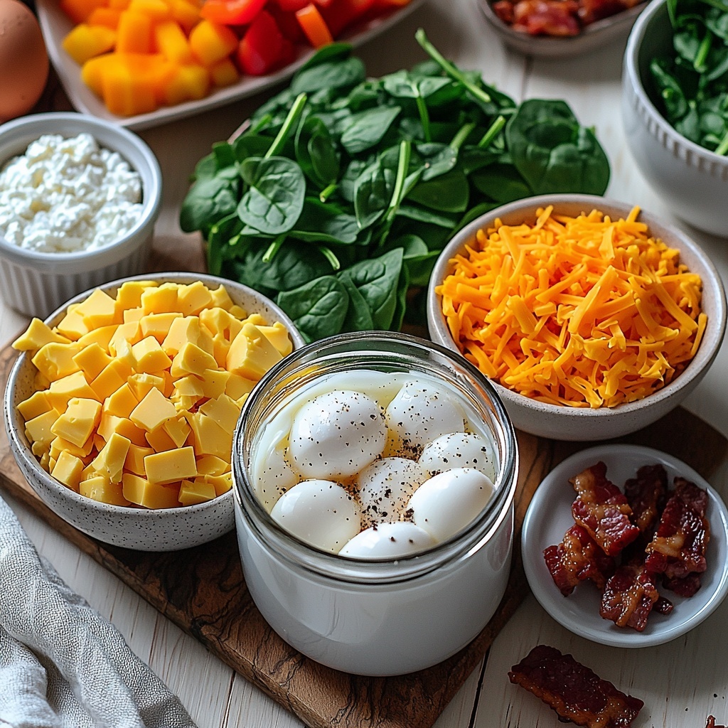 Simple, fresh ingredients are the foundation of this High Protein Egg Bites Recipe. Each component adds its own unique touch—from creamy dairy to vibrant vegetables, and savory meat options, combining taste, texture, and nutrition in perfect harmony.