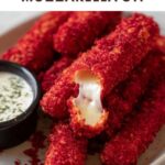 These Hot Cheeto Mozzarella Sticks bring a spicy twist to a classic appetizer. Coated with crushed flaming hot Cheetos, these crispy and melty cheese sticks are air-fried to golden perfection and served with cool ranch or blue cheese dressing for dipping. Perfect for game day or any craving for a tasty snack.