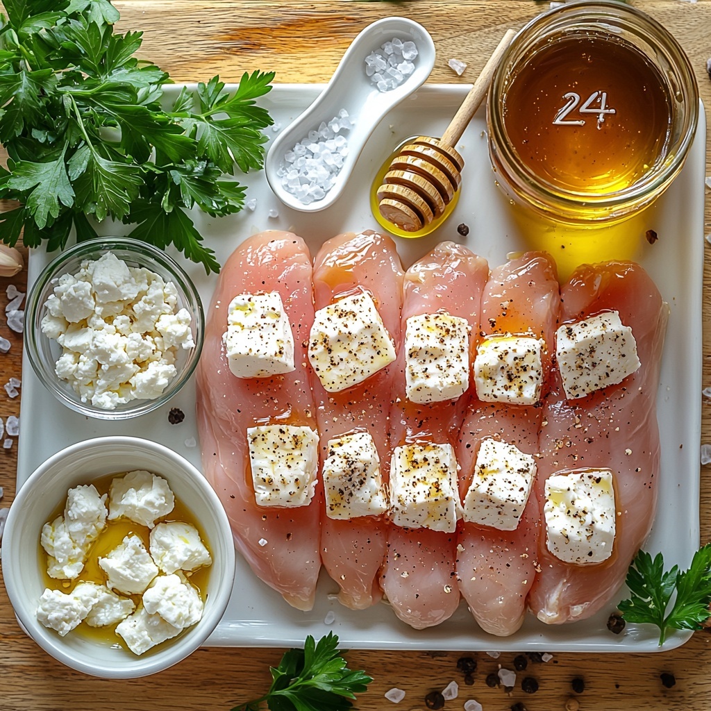 The ingredients for this Hot Honey Infused Feta Chicken Recipe are surprisingly simple yet brilliantly functional. Each one plays a vital role in creating the perfect harmony of flavors and textures that make this dish stand out.