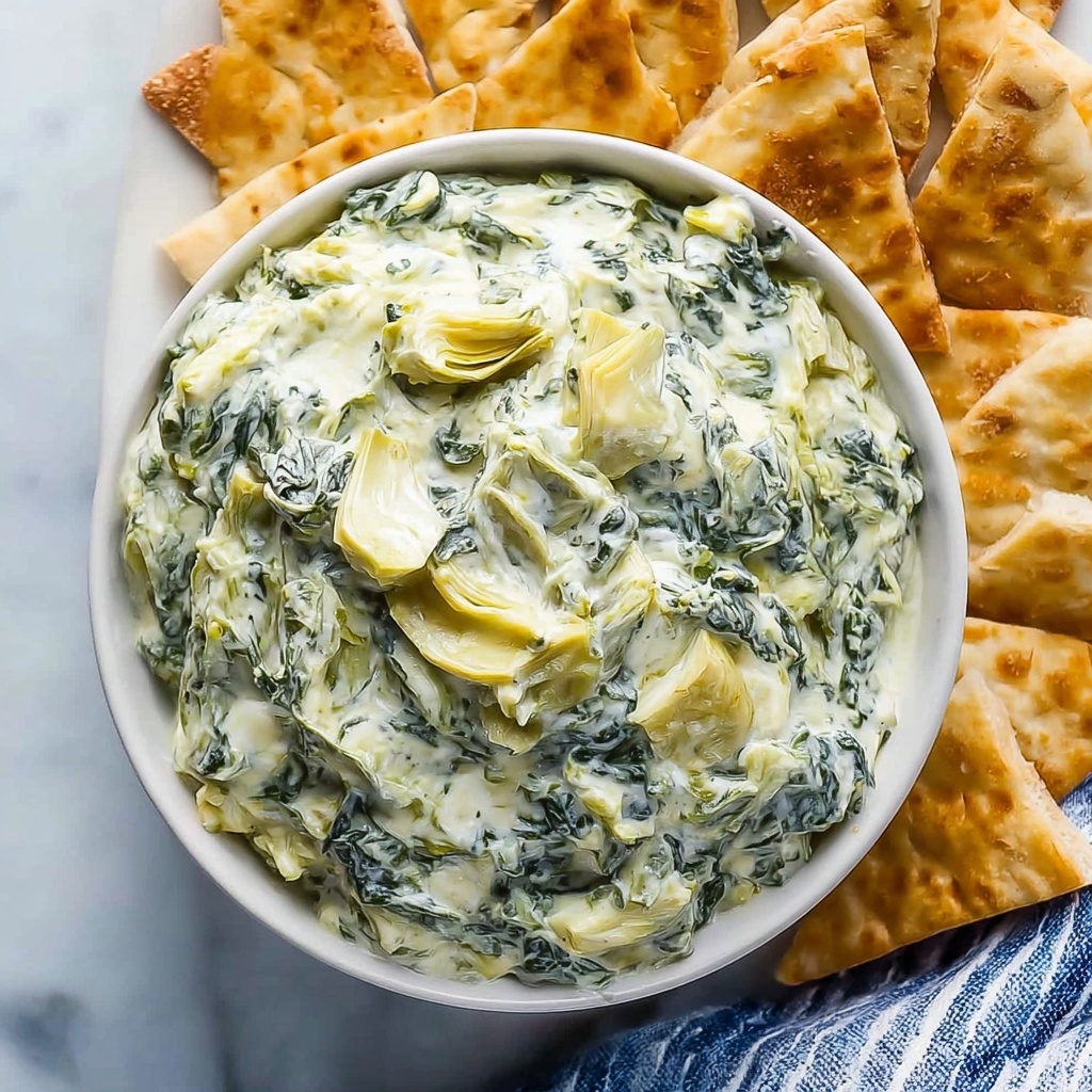 For a festive look, serve your dip in a hollowed-out bread bowl or individual mini bowls to make it easy for guests to dig in. You can also layer it in a clear glass dish with alternating layers of spinach and artichoke for a visually stunning effect that builds anticipation before tasting.