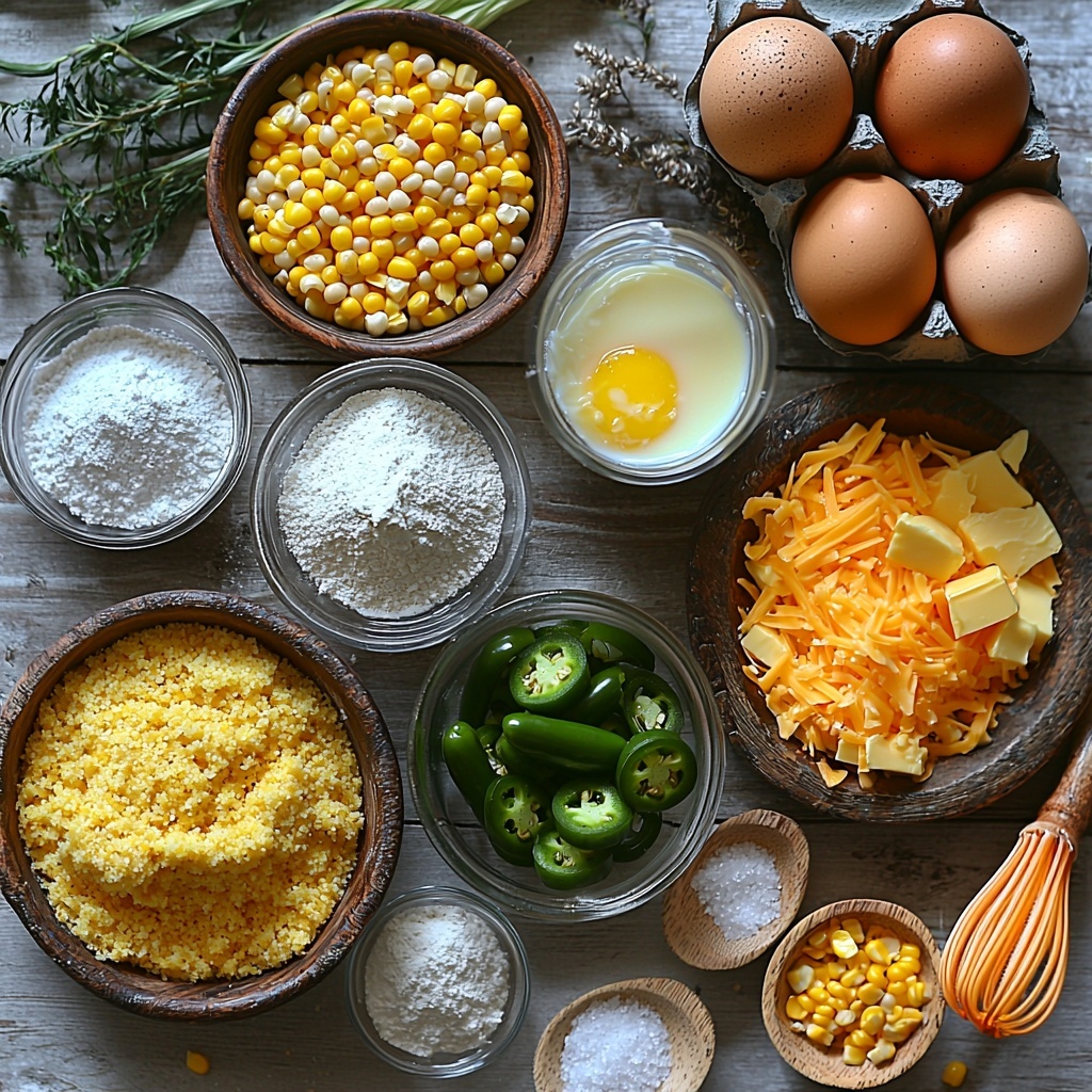 This Jalapeño Cornbread Recipe comes together with a surprisingly simple list of ingredients, each playing an essential role in crafting its signature flavor and texture. From the sharpness of cheddar cheese to the subtle tang of buttermilk, every component adds depth and dimension.