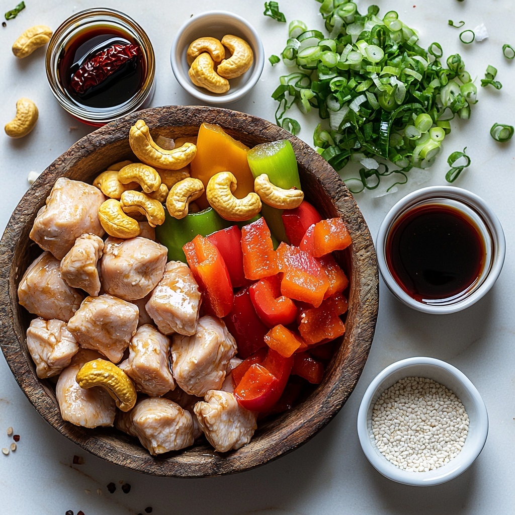 - ¼ cup cashews: Toasted for crunch and a buttery contrast that complements the chicken.