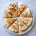 For a fun twist, arrange your quesadilla wedges in a fan shape on the plate, garnished with colorful veggies or sauces. You could serve smaller, bite-sized quesadilla triangles as finger food at a party. Pairing with mini bowls of guacamole, sour cream, and salsa not only invites dipping but creates a vibrant spread that’s as inviting to the eyes as it is to the palate.