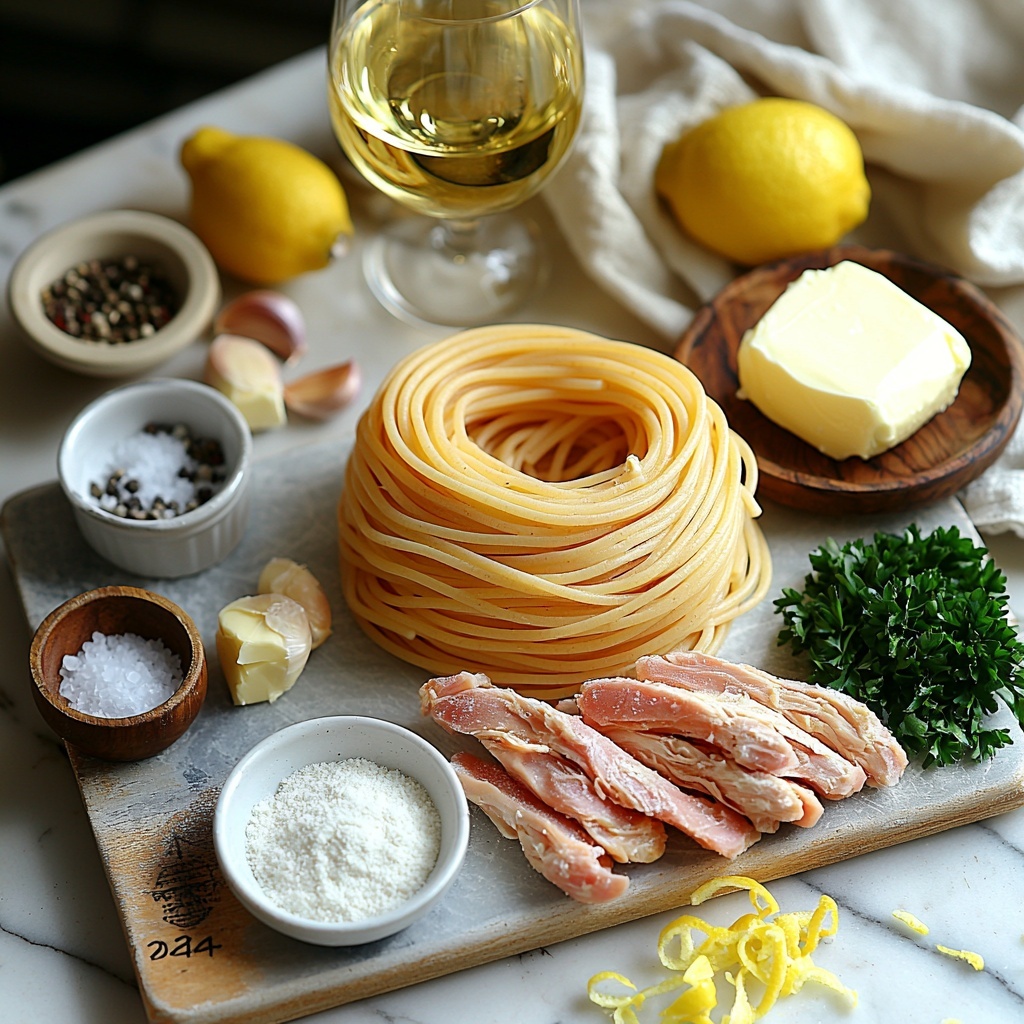 This recipe shines because of its simple but thoughtfully chosen ingredients, each playing an essential role in creating balanced flavors and inviting textures. From the tangy lemon juice that brightens the dish to the garlic and white wine which build deep, savory notes, every component is key to this classic pairing of chicken and pasta.