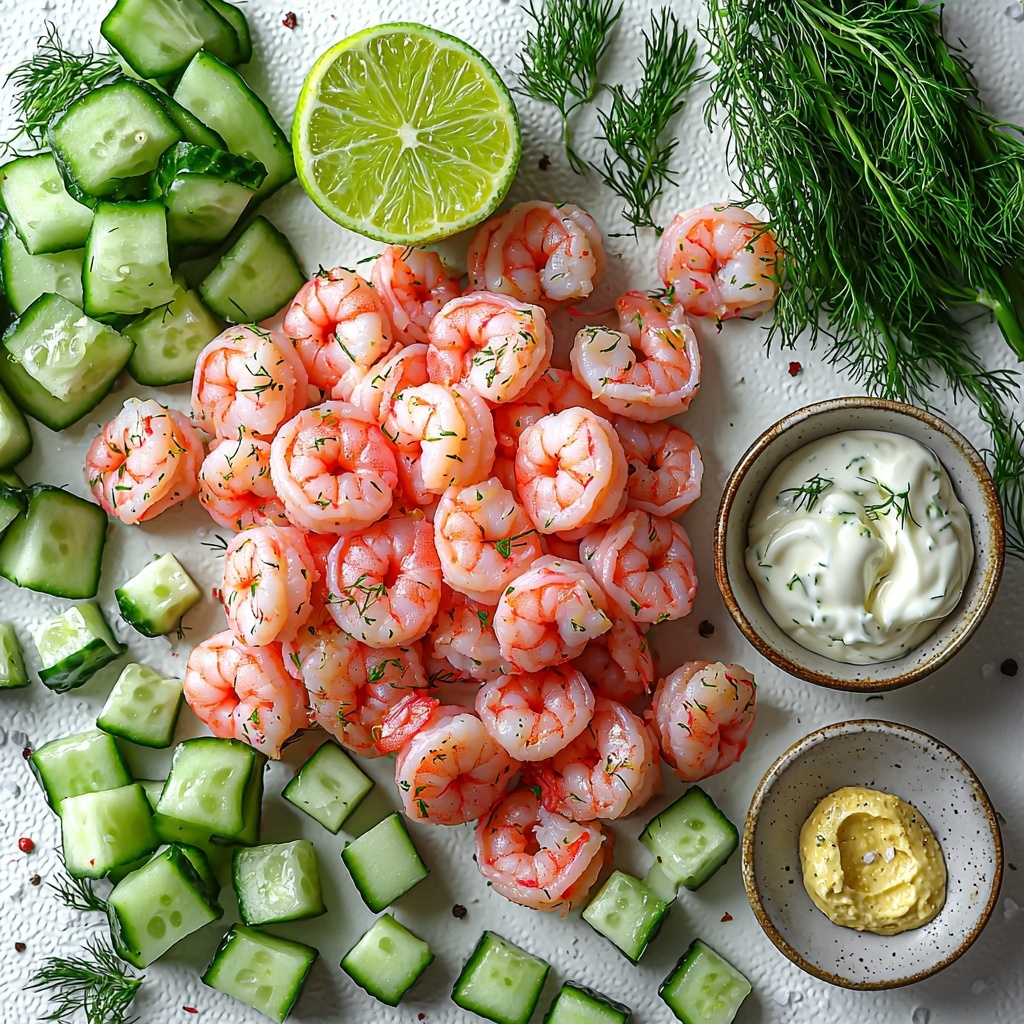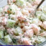 This refreshing Lemon Dill Shrimp Salad features tender, perfectly cooked shrimp tossed with a creamy, tangy dressing made from mayonnaise, sour cream, lime, and fresh dill. Crisp cucumber and green onions add crunch and brightness, making it an ideal light lunch or appetizer.