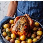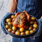 A flavorful Lemon Thyme Roast Chicken recipe featuring a whole chicken roasted to perfection with fresh lemon and thyme, resulting in a juicy, aromatic dish ideal for dinner.