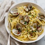 When you’re ready to enjoy your leftovers, gently reheat the pasta and clams in a sauté pan over low to medium heat. Add a splash of the reserved pasta water or a little white wine to revive the sauce’s silky texture. Avoid the microwave if possible to prevent overcooking the delicate clams.