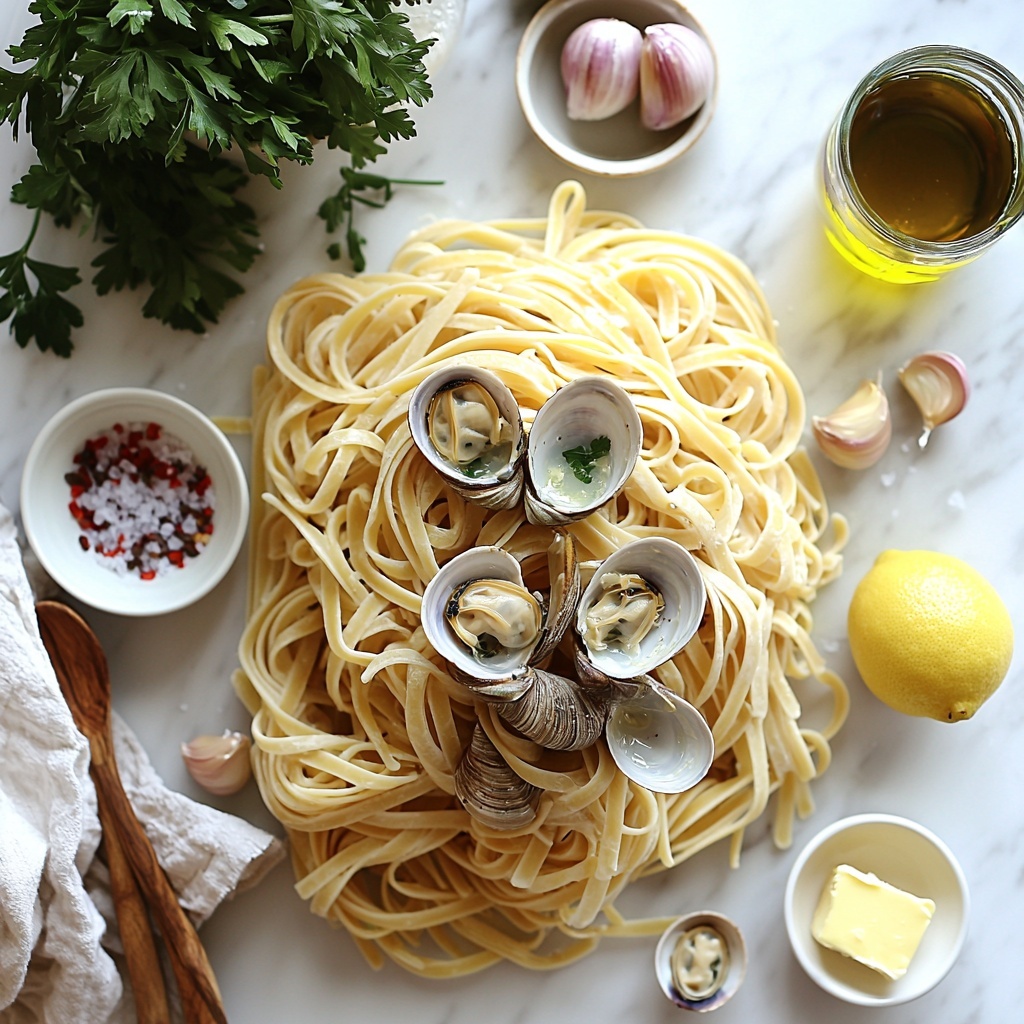 A classic Italian seafood pasta dish featuring tender linguine tossed with fresh Littleneck clams in a bright and flavorful white wine, garlic, and lemon sauce. This quick and elegant recipe balances the briny sweetness of clams with aromatic shallots, parsley, and a hint of heat from red pepper flakes, perfect for a delicious weeknight dinner or special occasion.
