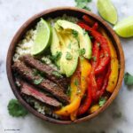 This Low Carb Steak Fajita Bowl is a bold and flavorful dish that combines marinated flank steak with sautéed bell peppers, onions, and cauliflower rice. Perfect for a healthy, satisfying meal that is low in carbs and packed with fresh ingredients and vibrant flavors.