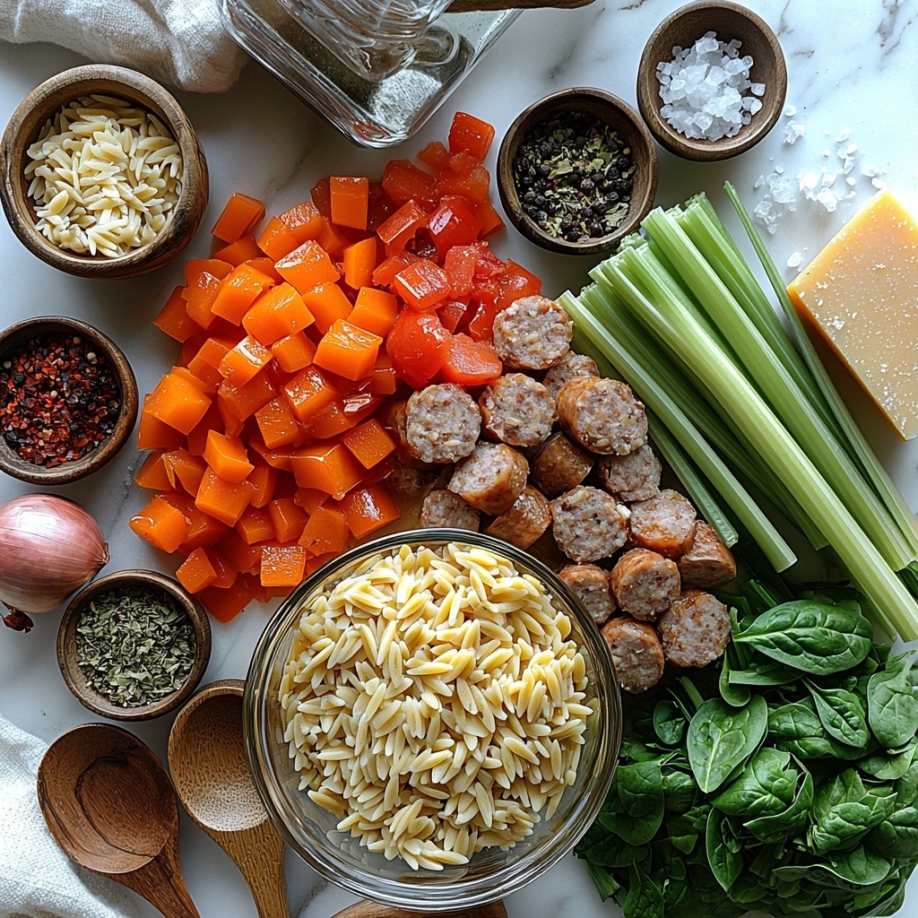 A hearty and flavorful Marry Me Sausage Orzo Soup that combines Italian sausage, fresh vegetables, and tender orzo pasta in a savory broth, finished with fresh spinach and Parmesan cheese. Perfect for a comforting weeknight meal ready in just 35 minutes.