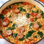 A hearty and flavorful Marry Me Sausage Orzo Soup that combines Italian sausage, fresh vegetables, and tender orzo pasta in a savory broth, finished with fresh spinach and Parmesan cheese. Perfect for a comforting weeknight meal ready in just 35 minutes.