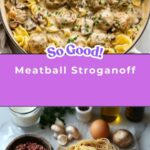 This hearty Meatball Stroganoff recipe combines tender Italian-seasoned meatballs baked to perfection with a rich, creamy mushroom and sour cream sauce served over egg noodles. The sauce is enhanced with white wine, Dijon mustard, and Worcestershire sauce for a savory depth, making it a comforting and satisfying meal that’s perfect for family dinners.