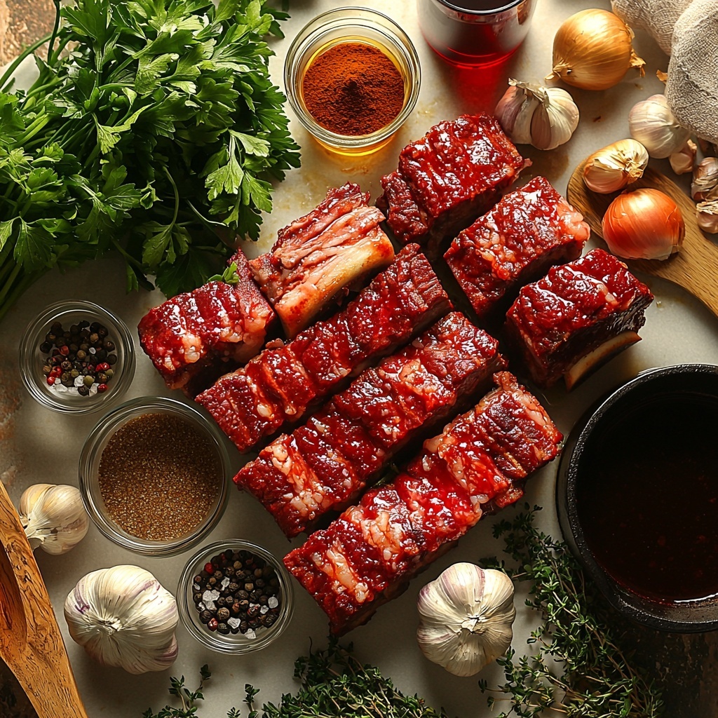 Gathering simple yet essential ingredients is the first step to creating these sumptuous beef short ribs. Each component plays a crucial role in building layers of flavor, contributing to the dish’s irresistible taste, texture, and beautiful color.