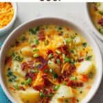 - Season and Garnish: Season with salt and black pepper to taste. Ladle the soup into bowls and garnish with crispy crumbled bacon and freshly chopped chives for added texture and flavor.