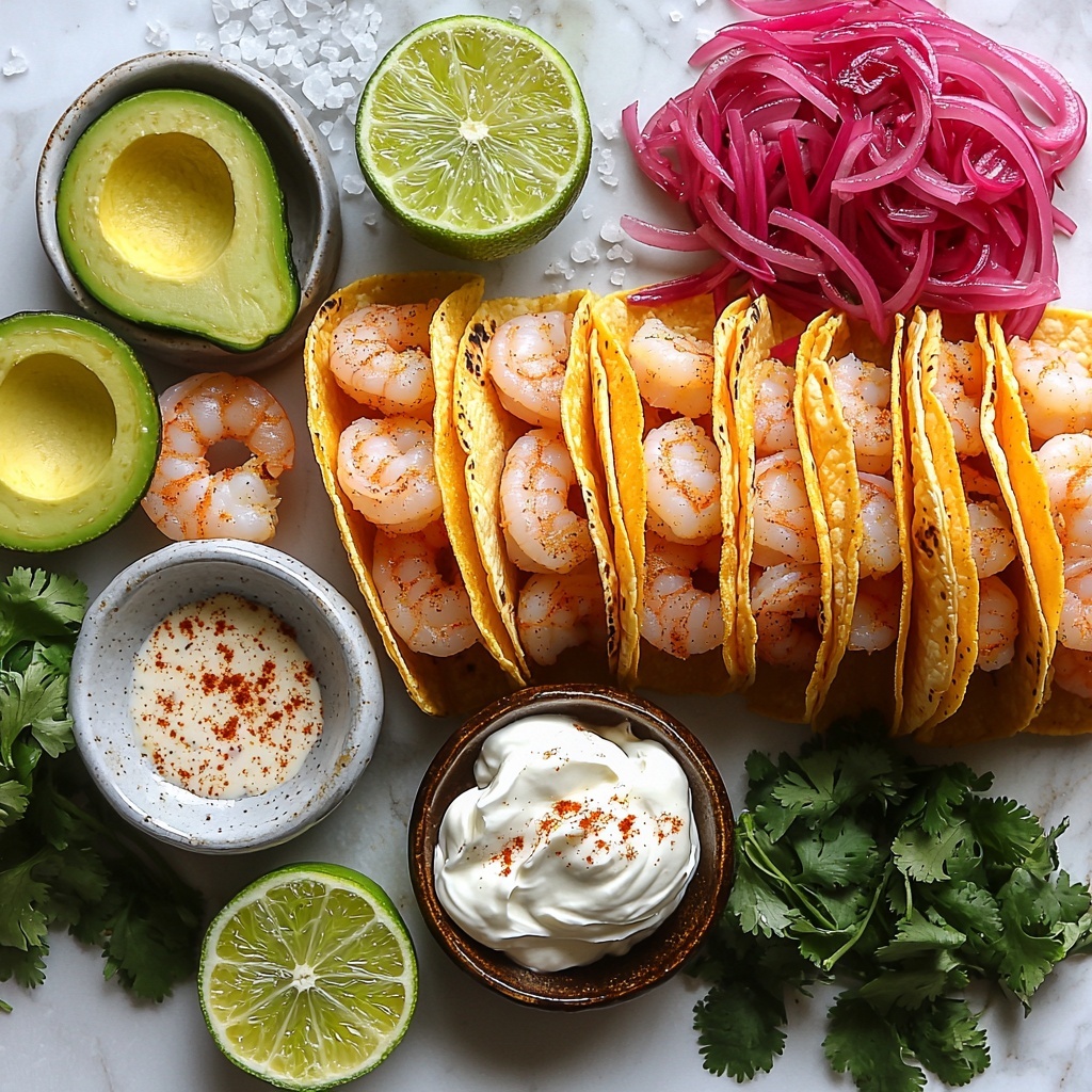 - Assemble the tacos: Layer each warmed tortilla with the lime cabbage slaw, cooked shrimp, sliced avocado, and drizzle generously with the lime crema. Garnish with fresh cilantro and pickled red onions if using. Serve immediately for the best taste and texture.