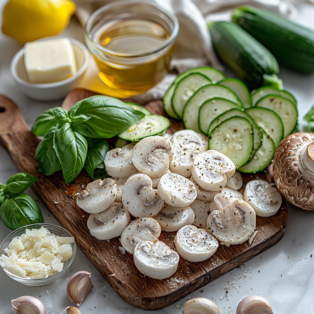 The magic of this Mushroom and Zucchini Shrimp Pasta Recipe starts with a handful of simple ingredients, each playing a key role in balancing texture, flavor, and aroma. From the silky butter to the fresh basil, these components combine seamlessly to create a dish that’s as inviting as it is delicious.