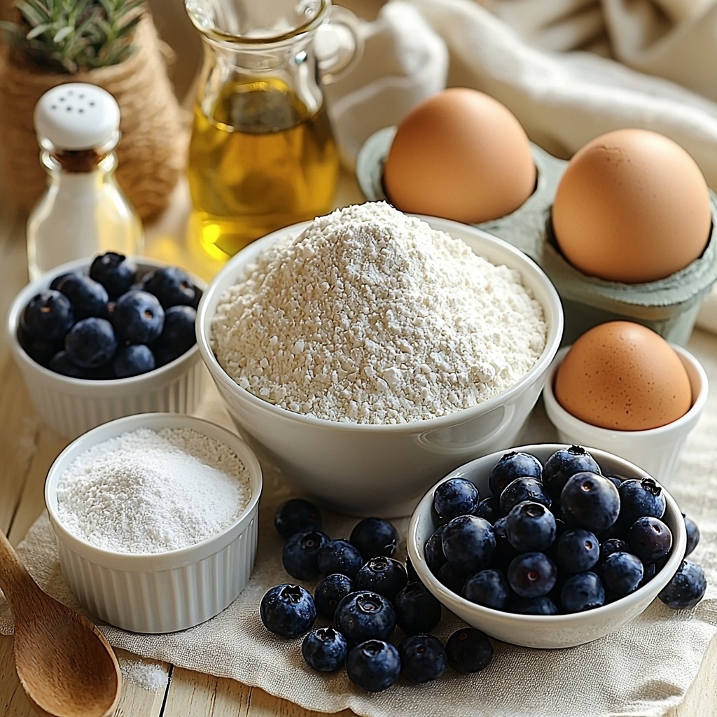 Simple ingredients are the secret to Nana’s magic, each playing its part in creating the perfect muffin. From the tender all-purpose flour to the fruity blueberries, every component adds to the flavor, texture, or appearance in just the right way.
