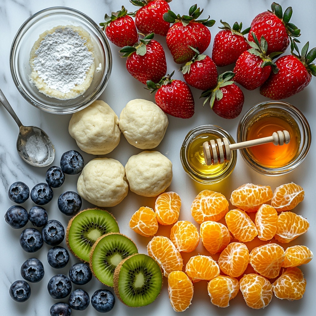 - Assorted fresh fruits (2 cups): Think sliced strawberries, blueberries, kiwi slices, and mandarin orange segments—these make the pizzas pop with color, freshness, and a burst of juicy flavor.