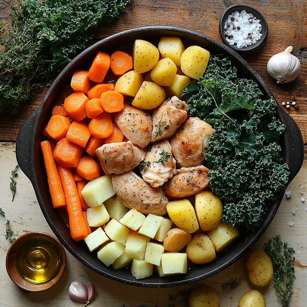 One-Pot Chicken and Kale Stew with Root Vegetables Recipe