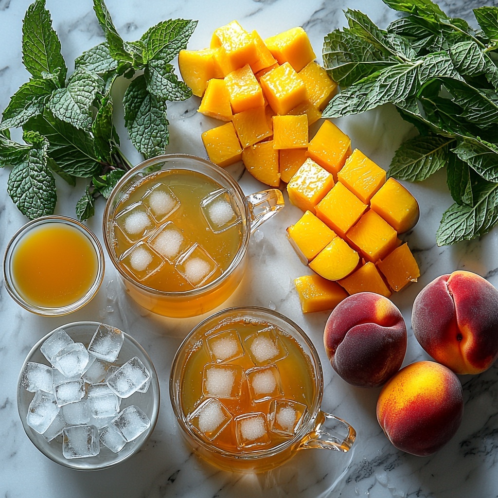 For a party or special occasion, serve the Peach Mango Iced Tea Recipe in mason jars or clear pitchers adorned with floating peach and mango slices. You could even freeze some juice in ice cube trays for extra bursts of flavor as the ice melts—such a charming twist!