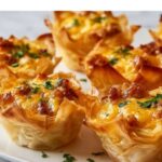 Although these bites are best enjoyed fresh for the perfect crunch and creaminess, you can freeze the prepared filling separately in a freezer-safe container for up to two months. To freeze the filled phyllo cups, it’s best to bake them first and cool completely, then freeze them on a baking tray before transferring to a sealed bag. Reheat gently in the oven to maintain texture.