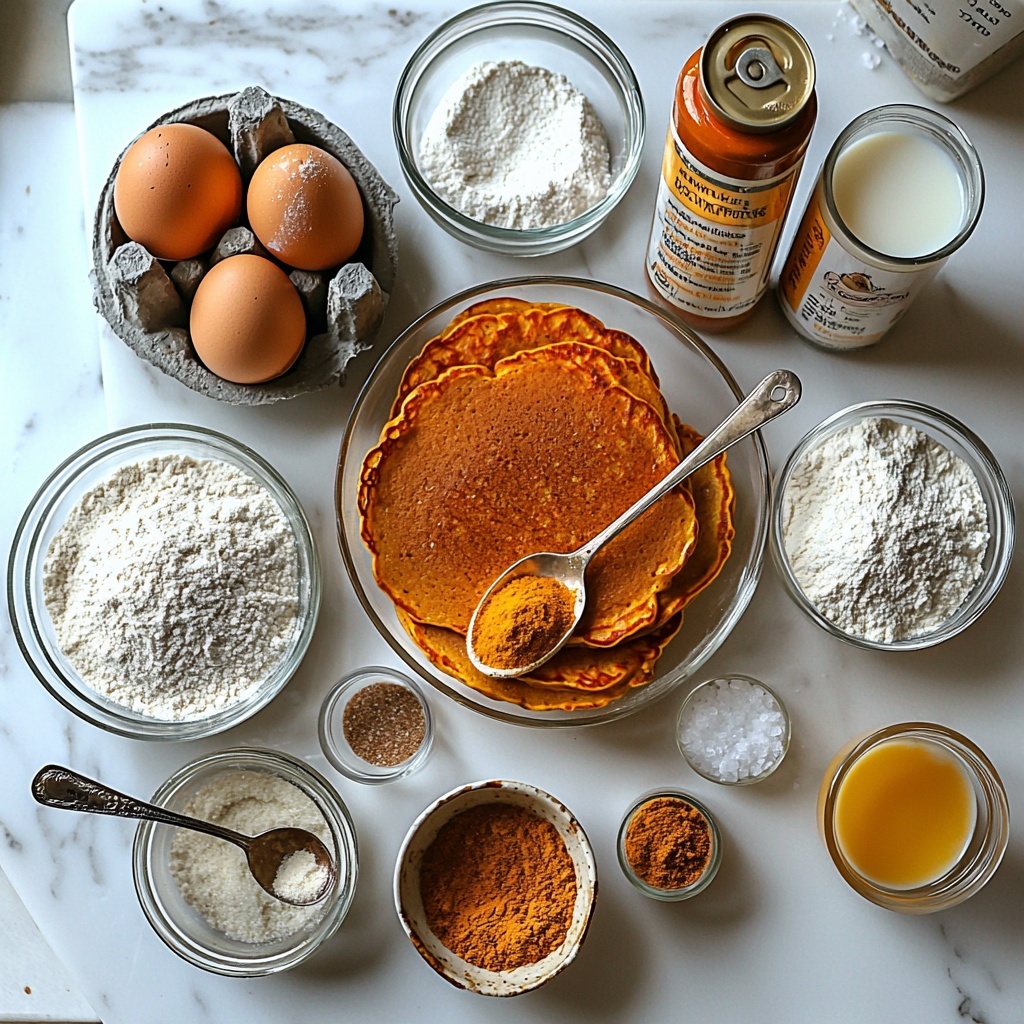 Nothing complicated here—just straightforward ingredients that combine to create a wonderful blend of flavor and texture. Each one adds something special, from the cinnamon and pumpkin pie spice that bring warmth to the batter, to the powdered leavening that ensures these pancakes turn out perfectly fluffy every time.