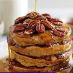 Fresh whipped cream, toasted pecans, or a sprinkle of powdered sugar can turn your pancakes from simple to spectacular. A dash of cinnamon or a drizzle of spiced maple syrup really complements their pumpkin-spiced flavor.