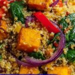 A vibrant and nutritious quinoa sweet potato salad that combines the earthy sweetness of roasted sweet potatoes with fluffy quinoa, fresh spinach, red bell pepper, and red onion. Tossed in a zesty lemon and olive oil dressing, this salad is perfect as a wholesome lunch or a light dinner, served warm, room temperature, or chilled.