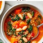 A hearty and nutritious Quinoa Vegetable Soup packed with fresh vegetables, protein-rich quinoa, and flavorful herbs. This comforting soup is perfect for a wholesome meal, combining sautéed aromatic vegetables, tender quinoa, and creamy cannellini beans, topped with a sprinkle of parmesan cheese for an added touch of richness.