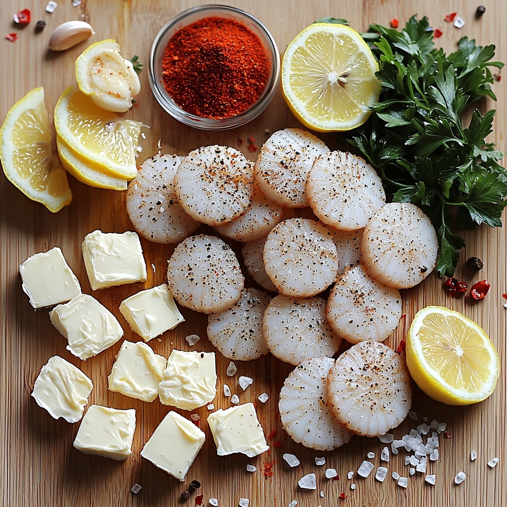 These ingredients are straightforward but each plays a crucial role in creating the multilayered flavors and textures of this dish. From the fresh scallops to the punch of garlic and the brightness of lemon and parsley, every element is essential.