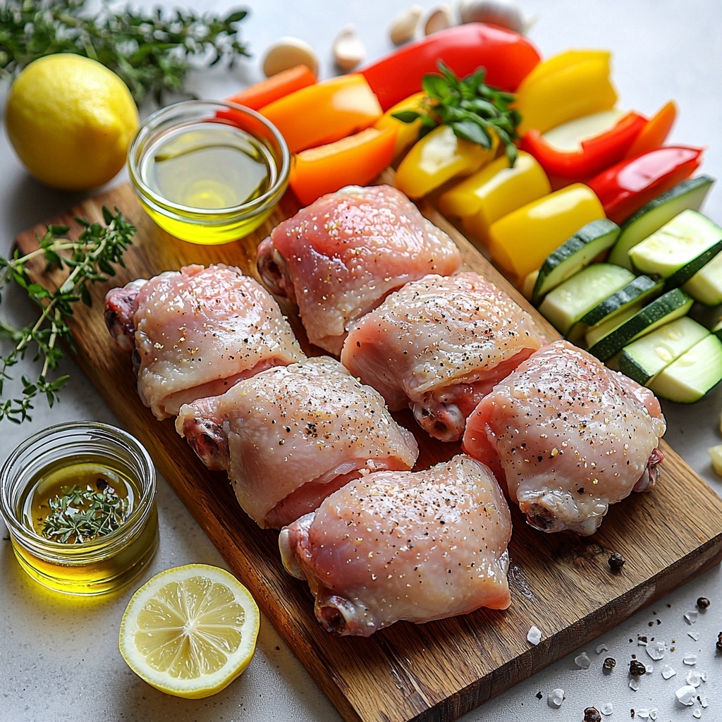 - Prepare Baking Sheet: Line a baking sheet with parchment paper to prevent sticking and easy cleanup. Arrange the marinated chicken thighs in the center of the sheet, then surround them with the colorful mixed vegetables for balanced cooking.