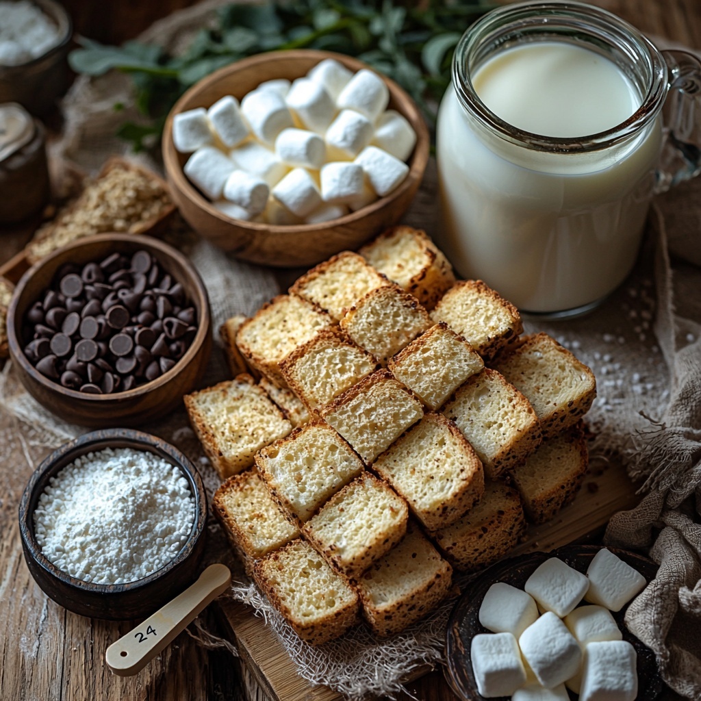 You only need a handful of ingredients to create this delicious S’mores French Toast Delight Recipe, and every one of them is fundamental to the final flavor and texture. From the rich custard base that gives the toast its tender bite to the sweet chocolate and marshmallow surprises nestled inside, each component plays its part perfectly.