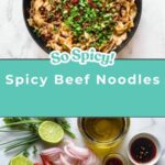 Spicy Beef Noodles is a quick and flavorful stir-fry dish featuring ground beef, thinly sliced peppers, and wonton wrapper noodles, all coated in a savory, slightly sweet, and spicy sauce. Ready in just 20 minutes, this recipe combines the heat of Fresno peppers and chili paste with the tang of lime juice, perfect for a satisfying weeknight dinner.