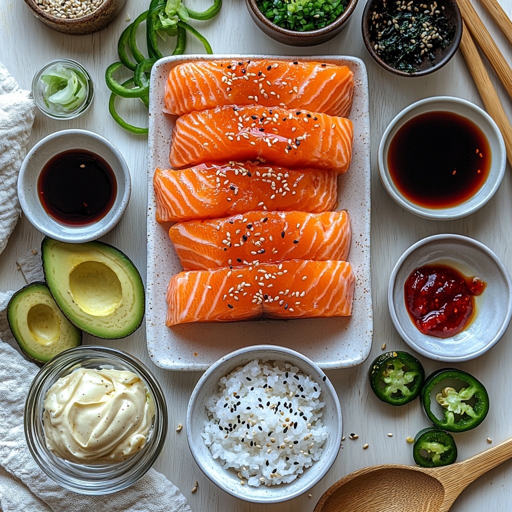 The magic of this Spicy Salmon Sushi Bake Recipe lies in how straightforward the ingredients are, each playing a crucial role in building layers of flavor, creaminess, and just the right amount of heat. From the vinegar-scented sushi rice to the spicy mayo blend, every component is essential to achieve that authentic, irresistible sushi bake experience.