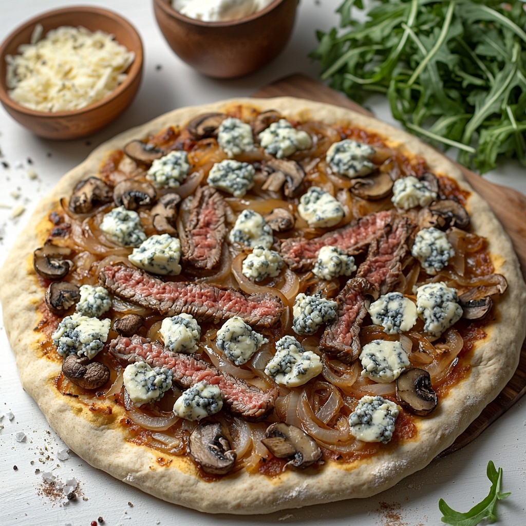 This Steak and Blue Cheese Pizza with Caramelized Onions and Arugula Recipe is a wonderful way to bring a bit of gourmet magic into your kitchen without fuss. Its blend of bold, comforting flavors and fresh toppings creates a pizza experience that’s both familiar and exciting. I can’t wait for you to try it and delight in every savory, tangy, and fresh bite. Happy cooking and even happier eating!