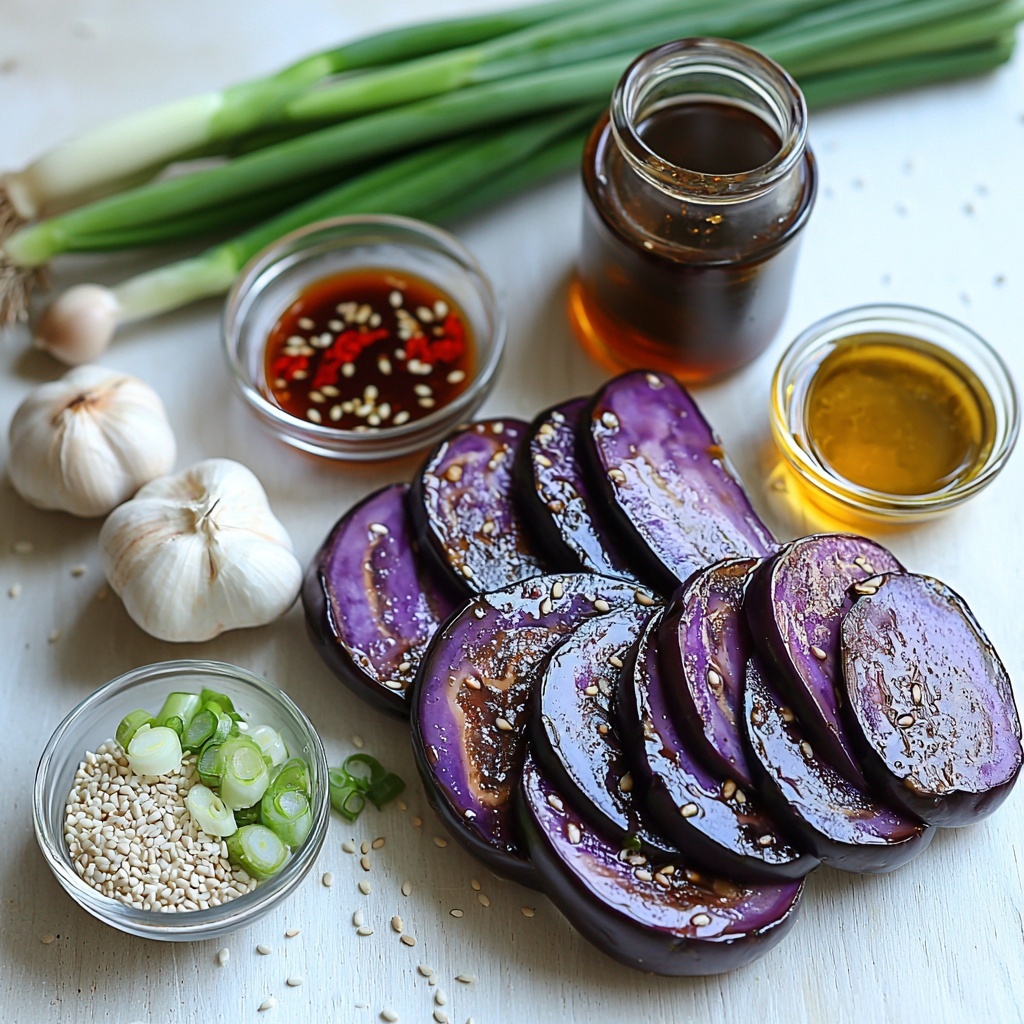 These ingredients are straightforward yet essential, combining to create a perfectly balanced Sticky Garlic Eggplant Recipe. Each one plays a vital role—from the silky eggplants that soak up flavor, to the garlic and sauces that build depth, and the touch of sweetness that keeps things addictive.