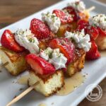 Strawberry Shortcake Kabobs are a delightful and easy-to-make dessert combining fresh strawberries, moist pound cake cubes, and a drizzle of honey, served with whipped cream. Perfect for summer parties or a fun snack, these kabobs offer a refreshing twist on the classic strawberry shortcake.