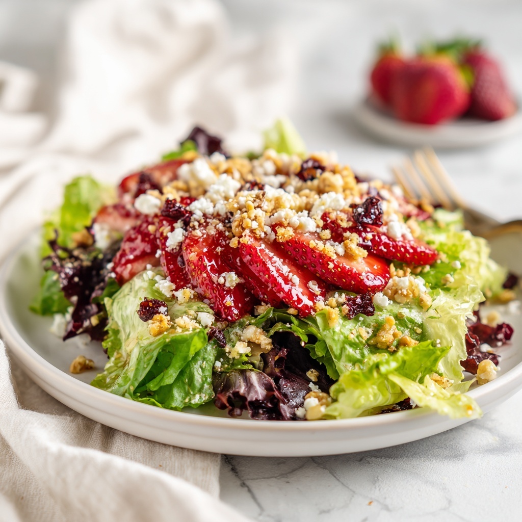 - Toss the Salad: Pour the prepared dressing over the salad and toss gently to coat all ingredients evenly without bruising the delicate greens and strawberries. Serve immediately for best freshness and flavor.