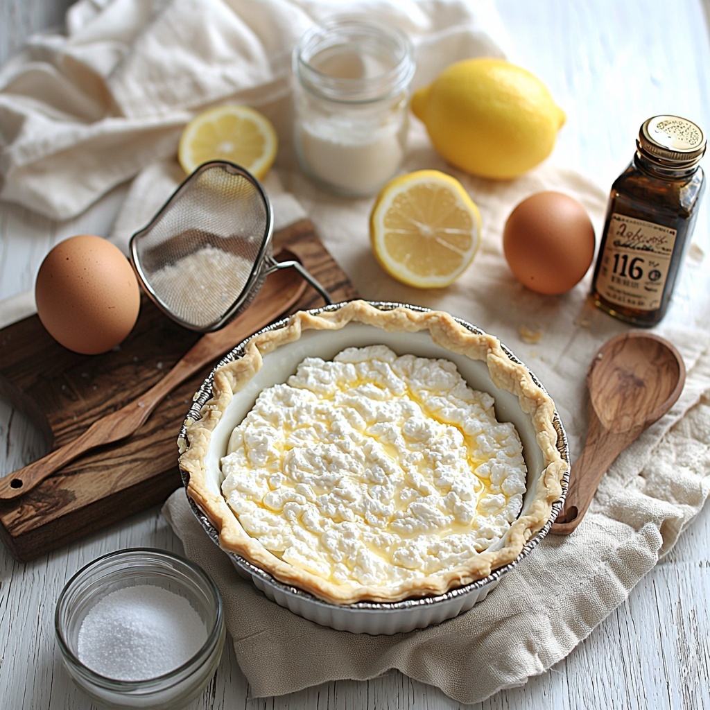 - Assemble the Pie: Pour the ricotta mixture into the unbaked 9-inch pie crust and spread it out evenly to ensure uniform baking.
