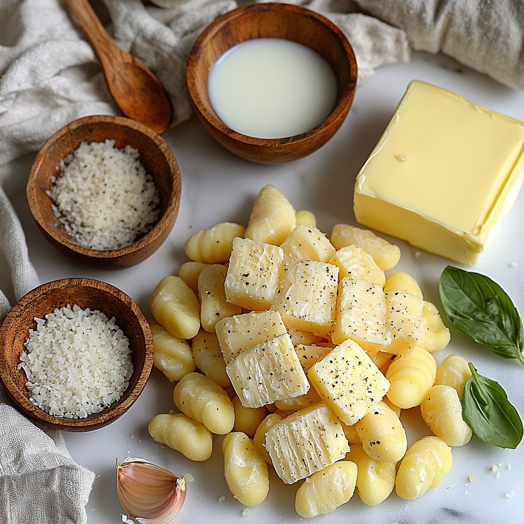 - 1 pound gnocchi (packaged or homemade): The soft, pillowy pasta base that soaks up all the cheesy goodness.