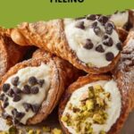 Dip the exposed ends of the cannoli cream into your choice of chopped pistachios, mini chocolate chips, or a delightful mix of both. These toppings add bursts of texture and flavor that turn this classic recipe into a personalized treat.